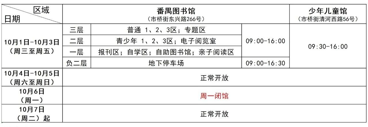 番禺区图书馆2025年国庆、中秋节期间开放安排